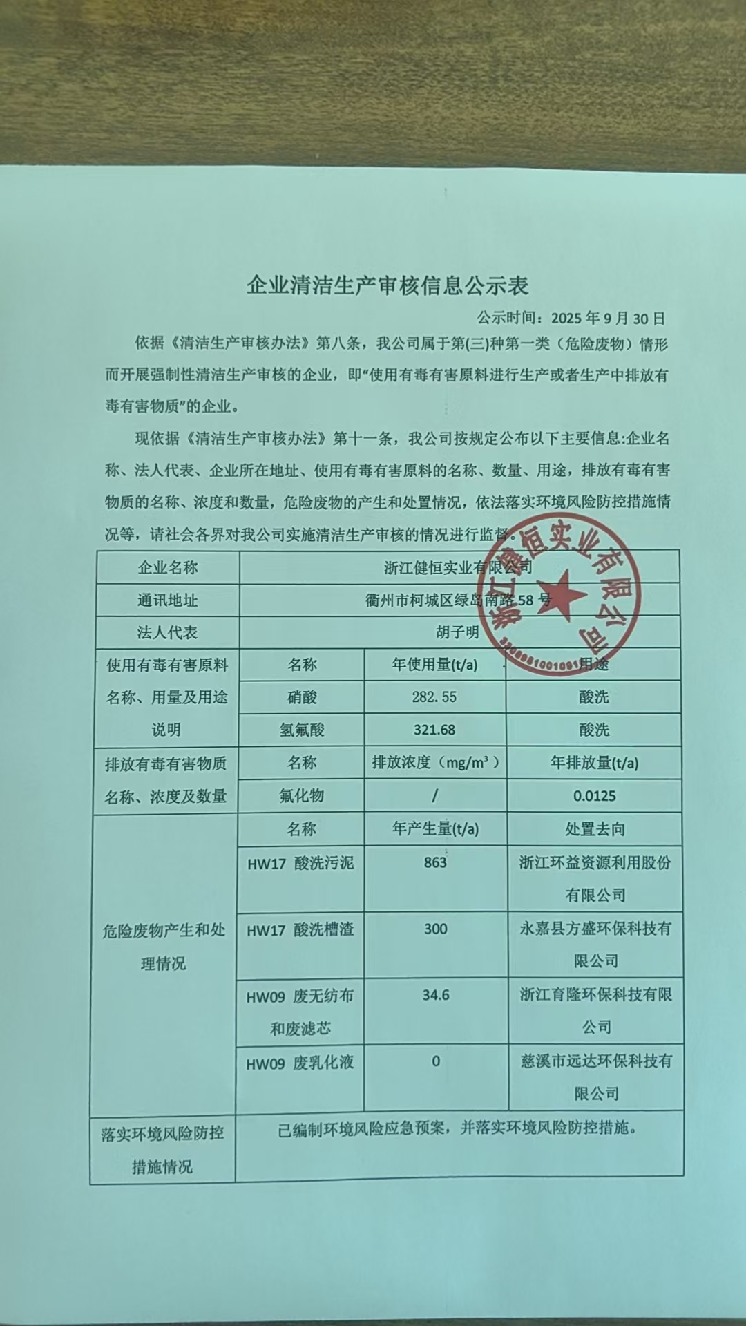 企业清洁生产审核信息公示表